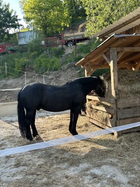 Bonjour, c'est à contrecoeur que je vends mon hongre Noriker. Il a 6 ans et mesure environ 1,67 m. Il a été monté et a déjà été en attelage, ce qu'il exécute parfaitement. Il adore le travail à pied et maîtrise également le pas espagnol. Je souhaite lui trouver un foyer où il sera à la fois stimulé et sollicité, car il est très intelligent. Ce n'est pas un cheval pour débutants en raison de son âge. Ses dents ont été vérifiées il y a deux mois. Je le cède car il ne convient tout simplement pas entre nous. N'hésitez pas à me contacter si vous êtes intéressé. 015123271180 Visites possibles à tout moment. Ce n'est pas une vente d'urgence, il sera confié uniquement au meilleur candidat.