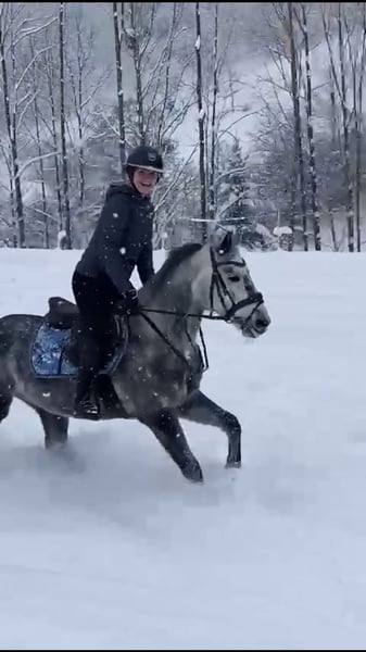 Nous vendons notre chère "Bettina". Betti est une ponette de sport néerlandaise de 11 ans (robe baie, 147 cm). Au cours des trois dernières années, Betti a pu accumuler de l’expérience dans de nombreux domaines avec moi, allant des semaines de randonnée, des sorties à cheval même sans selle, beaucoup de travail à pied et de nombreuses excursions, jusqu’à l’apprentissage en dressage et la compétition de saut d’obstacles. Partout, elle a toujours fait preuve d’engagement, d’attention et de finesse. Elle répond facilement aux aides et possède trois allures de base très bonnes. Grâce à sa sensibilité, elle convient particulièrement comme cheval pour jeunes ou dames, mais en raison de sa sensibilité, elle n’est pas adaptée aux jeunes enfants ou aux débutants. Par le passé, Betti a également été utilisée occasionnellement en école d’équitation et peut être monté sans problème par des jeunes cavaliers à partir du niveau N. Pour les cavaliers de loisir ambitieux, Betti est un rêve !! Elle est également enregistrée comme poulinière. Son pedigree est excellent : (Ascendant : Quettino de Florys ; Descendant : King Kalido-B). Betti a participé à plusieurs concours de saut d’obstacles et a été victorieuse jusqu’à des épreuves A*. Elle possède du talent, mais ne montre pas la même passion pour le saut que dans d’autres disciplines. C’est pourquoi nous souhaitons lui trouver un foyer où la compétition ou le saut ne seraient pas la priorité. Note : Betti tète, mais cela n’affecte ni sa santé ni ses performances. Nous donnons Betti à contrecoeur, car sa cavalière passe à un grand cheval. Il est d’autant plus important pour nous qu’elle trouve une famille qui l’apprécie et la soutient. Pas de marchands !