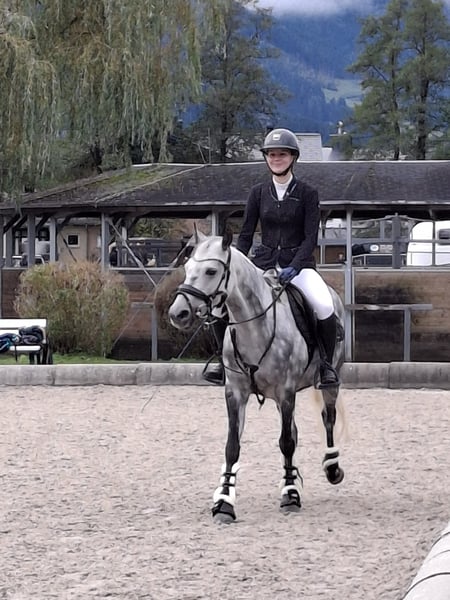 Wir verkaufen unsere liebe "Bettina“. Betti ist ein 11-jähriges Niederländisches Reitpony (Apfelschimmel, 147 cm) In den letzten drei Jahren durfte Bettina mit mir Erfahrungen in zahlreichen Bereichen sammeln, von Wanderreitwochen, Ausritten auch ohne Sattel, viel Bodenarbeit und zahlreichen Ausflügen bis hin zur Dressurarbeit und Springturnieren. Überall zeigte sie sich stets engagiert, aufmerksam und feinfühlig. Sie ist leicht an den Hilfen und hat drei sehr gute Grundgangarten. Mit ihrer feinen Art eignet sie sich besonders gut als Jugend- oder Damenpferd, ist allerdings aufgrund ihrer Sensibilität nicht für kleine Kinder oder Anfänger geeignet. Betti lief in der Vergangenheit auch ab und zu im Reitschulbetrieb und kann problemlos von Jugendlichen ab Nadelniveau geritten werden. Für ambitionierte Freizeitreiter ist Betti ein Traum!! Ebenso ist Bettina als Zuchtstute eingetragen. Ihre Abstammung ist hervorragend: (V: Quettino de Florys; MV: King Kalido-B) Betti war in der Vergangenheit mehrfach im Springen unterwegs und siegreich bis zu A*-Springen. Sie verfügt über das Talent, zeigt sich jedoch im Springsport nicht mit der gleichen Begeisterung wie in anderen Bereichen. Deshalb wünschen wir uns für sie ein Zuhause, in dem Turnier- oder Springsport nicht im Vordergrund steht. Hinweis: Bettina koppt, es beeinflusst jedoch weder ihre Gesundheit noch ihre Leistung. Wir geben Betti nur schweren Herzens ab, da ihre Reiterin auf ein Großpferd umsteigt. Umso wichtiger ist es uns, dass sie in die besten Hände kommt, wo sie geschätzt und gefördert wird. Keine Händler!
