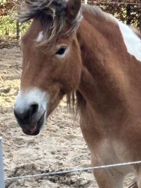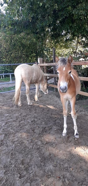 Schöne junge Stute mit Plattenbont-Fell, cleveres Füchsin.