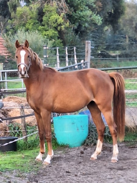 En raison de circonstances, nous devons fortement réduire notre élevage. C'est pourquoi nous proposons à la vente une jument rouan de 2,5 ans (presque 3 ans) avec un mouvement exceptionnel. Heimolen's Felicia est une jument rouan de 2,5 ans d'environ 1,45 m. Elle est la fille du étalon noir Welsh Old Avenue's Cezar, qui a été approuvé. Old Avenue's Cezar a été vendu en Amérique. Sa mère, la jument BELICIA, est multiple championne nationale, classée MEERVOUDIG NAT. KAMPIOEN, avec la mention KEUR + PREFERENT. De cette mère sont issus plusieurs champions, notamment le étalon de dressage NRPS HARVEY'S DREAM OF GOLD et le champion général du Dutch Pony Championship 2023, DURELLO. Durello a été le top de la vente aux enchères Elite Dressage Pony Sales, avec un prix de vente record de 25 000 € !! Belicia est également la mère de la jument KEUR reserve nationale 2024, Heimolens Sparklings Lizzy, âgée de 3 ans. Grâce à ses mouvements très puissants, Felicia est une candidate très intéressante et remarquable, que ce soit pour l’élevage ou en tant que pony de sport !! Elle devrait atteindre une taille idéale d’environ 1,47 à 1,48 m. Pour plus d’informations, n’hésitez pas à nous appeler ! Twan : 00 31 6 53 47 22 60