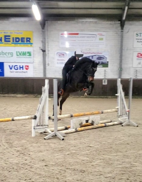 5 jährige qualitätvolle Stute aufgrund fehlenden Reiters in gutes Zuhause abzugeben. Frisch eingemessen mit 148cm. Deckt auch größere Reiter sehr gut ab. Sie ist gut angeritten und hat bereits ein Mal Turnierluft schnuppern dürfen, was sie hervorragend gemeistert hat. Definitiv doppelt veranlagt! Verkehrssicher, Brav beim Schmied, lässt sich problemlos verladen. Wer sich seinen Rohdiamanten selber weiter schleifen möchte, ist hier genau richtig! Standort 26892 Dörpen. Tel. 0162 1304432