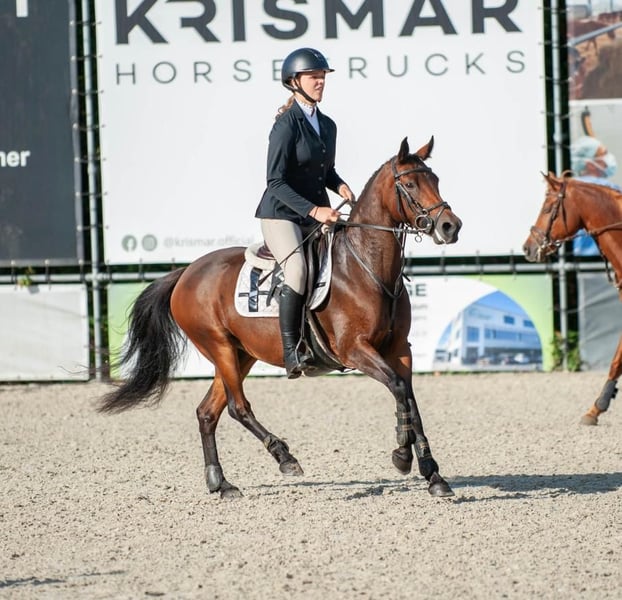 Quicky de la Claevervallei es una pony D de 9 años, registrada en NRPS, con una genealogía excepcional directamente del criador. Su padre es Lexus de la Claevervallei (BRP), que compitió a nivel internacional, y es hijo de Vedet de la Vondelhoeve. La madre es Sulaatik's Moment Supreme, una pura de la raza New Forest, que compitió hasta 110 cm en los Países Bajos y destacó en doma en Bélgica. Quicky vdC mide aproximadamente 142 cm a la cruz y goza de buena salud. Está apta para inspección. Es una pony de remolque. Quicky vdC es principalmente una pony de salto, pero debido a su gran sangre, también puede ser utilizada para concurso de CCE y en doma, donde demuestra tener carácter y presencia. A pesar de su carácter excepcional y mentalidad ganadora, quizás no sea la opción ideal para un jinete principiante. Actualmente, compite con éxito en niveles de 90 cm a 1 metro, pero sin duda posee la calidad y el potencial para subir a un nivel superior con un jinete experimentado y buena preparación. Si buscan una preciosa pony para niños, con un carácter excepcional y de gran calidad, no necesitan buscar más. Los vídeos están disponibles bajo su nombre en YouTube. Para más información, solo por teléfono: +32 475 705 941. No se responderán mensajes.