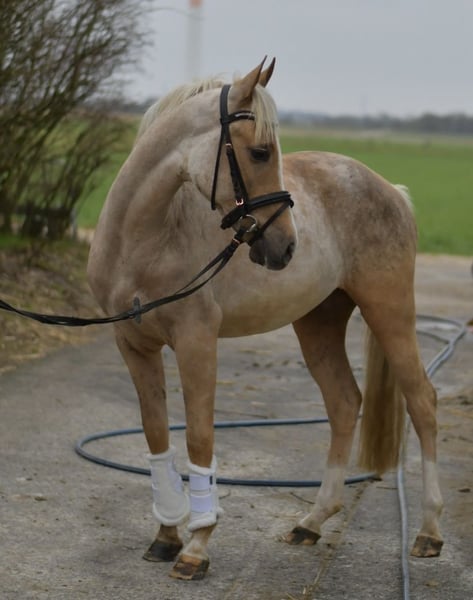 Entdecken Sie Milo, unser zauberhaftes Palominopony – ein wahrer Rohdiamant für Reiter! Milo ist bereits angeritten und beherrscht alle drei Gangarten (Schritt, Trab, Galopp) mit Bravour. Er steht am Anfang seiner Ausbildung und bietet Ihnen die einmalige Gelegenheit, ihn selbst weiter auszubilden und zu formen. Seine Talente und Möglichkeiten sind nahezu unbegrenzt! Aktuell wird Milo von uns weiter trainiert, sodass Sie die Option haben, die Ausbildung nach dem Kauf fortzusetzen. Gerne begleiten wir Sie auch weiterhin auf diesem spannenden Weg, um das volle Potenzial Ihres neuen Begleiters auszuschöpfen. **Besonderes Angebot:** Bei sofortiger Mitnahme erhalten Sie 5% Rabatt auf den Verkaufspreis! Nutzen Sie diese Gelegenheit und sichern Sie sich Ihr neues Traumpony. **Probereiten:** Überzeugen Sie sich selbst von Milos Charme und seinen Fähigkeiten! Sie sind herzlich eingeladen, ihn bei uns auszuprobieren. Die Kosten für das Vorreiten oder Probereiten betragen 30 € pro Person. Wir freuen uns darauf, Ihnen Milo vorzustellen! Kommen Sie vorbei und lassen Sie sich verzaubern!