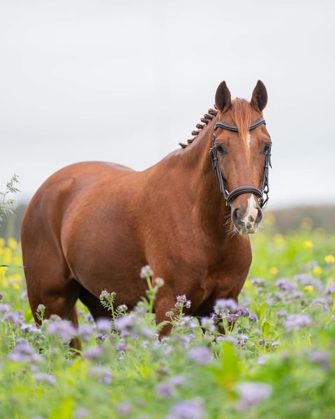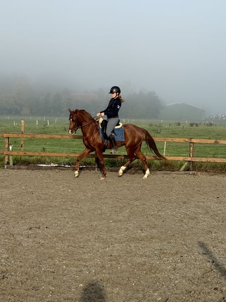 Sehr schickes 5-jähriges Dressurpony-Ruin. Le Vainqueur. Le Matsjo x Kasanova van Klaverborch. Ein äußerst liebenswertes und elegantes Pony, gemessen bei 1,43 m, aber wird noch etwas wachsen. Im letzten Jahr haben wir es ausgebildet, aktuell läuft es auf L2 mit Siegpunkt. Sehr angenehm zu reiten. Auch brav bei Ausritten im Gelände. Gute Bewegungen und läuft leicht nach Achten. Schnelles Pony, daher absolut nicht für Anfänger geeignet. Zudem besteht Potenzial als Springpony, es macht eine gute Sprungqualität. Sehr lieb im Umgang, leicht auf den Trailer zu verladen, beim Schmied und beim Scheren. Röntgenologisch untersucht und genehmigt. Videos auf Anfrage. Preis im normalen Rahmen.