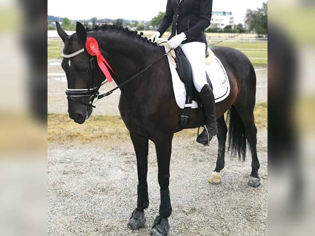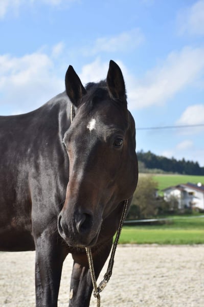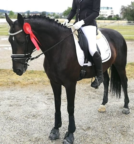 Schweren Herzens verkaufe ich aus Zeitmangel meine 13-jährige österreichische Warmblutstute „Watch Me“. (Stockmaß: ca 160 cm) Sie ist eine sehr motivierte, temperamentvolle Stute mit viel Go, vor allem in der kalten Jahreszeit und daher kein Kinder- oder Anfängerpferd. Sie braucht einen erfahrenen Reiter / eine erfahrene Reiterin auf Lizenzniveau, der/die ihr Sicherheit, klare Hilfen sowie eine konsequente und faire Führung bieten kann. Watch Me ist vielseitig einsetzbar und arbeitet gerne in der Dressur (bis L-Lektionen), genießt aber ebenso Bodenarbeit und entspannte Ausritte. Sie verfügt über Turniererfahrung (letzter Turnierstart 2020) und ist geländesicher. Im Umgang ist sie absolut unkompliziert: sehr verschmust, menschenbezogen und eine echte Seele von Pferd. 📍 Standort: Neuhofen im Innkreis/ Österreich Abstammung Vater: Hochadel Mutter: Whitney (Weltmeyer) Platz vor Preis. Nähere Infos gerne per Telefon.