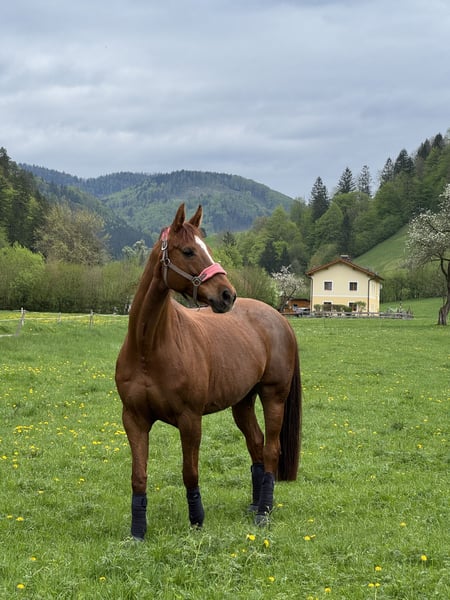 Dear horse friends! 🐴 Unfortunately, I have to part with my mare Shakira, affectionately called Shaki, for personal reasons. She has been with me for 3 years now, which makes this decision really difficult for me. Shaki is a 15-year-old warmblood mare standing at 1.72 m. I originally bought her as a young horse, but since she was very stressed at competitions, she was unfortunately not suitable for that. However, she has developed into a wonderful and reliable partner at home, who truly flourishes with the right person. She used to compete in show jumping up to class L and still enjoys working – whether in the arena or out on the trails. She has arthritis in both hind legs, which only occasionally manifests as a stiff gait. She does not require medication or special care, just a longer warm-up time. In handling, Shaki is sweet, well-behaved, and reliable. She loves varied work, groundwork, and leisurely rides at walk, trot, or canter. She is sensitive and light to ride, so I am looking for someone with experience with larger horses who can handle her calmly and consistently. Shaki is not a horse that simply "goes along" – she needs a person she can trust and work with. Those who do so will gain a loyal, honest, and strong-charactered horse that gives back a lot. Videos and trial rides available upon request via WhatsApp.