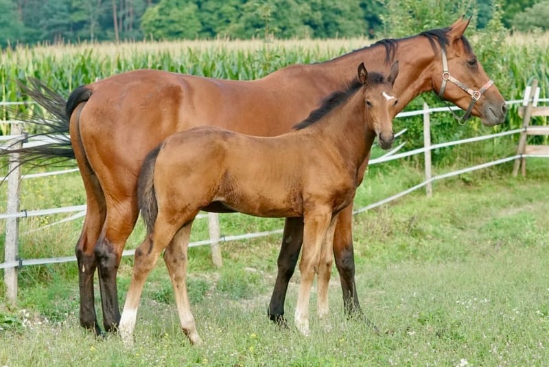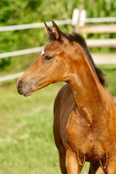 Zum Verkauf steht hier "Ranjana" von Sky (Gut Schönweide) aus der Verbandsprämienstute Raffinesse von Revanche de Rubin (Rubin Royal OLD). Ranjana stammt aus dem Stutenstamm der Amonka, aus dem mehrere Grand Prix-Pferde und gekörte Hengste, wie beispielsweise Total Diamond stammen. Ranjana ist ein vielversprechendes und bildhübsches Stutfohlen mit dem Wow Faktor, schon allein durch ihr auffälliges Abzeichen am Kopf. Sie wurde im Mai 2025 geboren und besticht durch Ihr makelloses Exterieur, ihre Schönheit und Ihre Bewegungen, die Lust auf mehr machen. Die Mutter selbst ist Verbandsprämienstute, die sowohl bei der Stutbuchaufnahme, als auch bei der Materialprüfung als 2. Reservesiegerin hervorging. Mit Qualifikation für das Bundeschampionat in Stadl-Paura, wo sie nur knapp den Einzug ins Finale verpasste. Ihre Feldleistungsprüfung konnte sie ebenso mit dem 3. Platz absolvieren. Ihr erstes Fohlen wurde zum Elitefohlen gekürt und erhielt die Qualifikation zum Bundeschampionat. Der Vater Sky (Gut Schönweide) ist längst kein unbeschriebenes Blatt mehr und in aller Munde. Er war Publikumsliebling der Körung der Hannoveraner 2020 und begeisterte bei jeder Vorstellung, wo er sich als Prämienhengst kürte. 2025 konnte sich Sky auf Anhieb für das Bundeschampionat qualifizieren. Seine erste S*Dressur konnte er auf Anhieb mit dem 3. Platz beenden. Es folgte ein 2. Platz in der S* mit über 71%. Ein auffällig bunter, moderner und erfolgreicher Hengst mit dem Charakter aus Gold. Ranjana kennt das Fohlen-ABC und ist brav im Umgang. Sie hat ein freundliches, menschenbezogenes Wesen und zeigt sich im Alltag offen, aufmerksam und lernwillig. Unsere Fohlen werden regelmäßig entwurmt, dem Schmied vorgestellt und steigen brav in den Hänger ein. Bei Interesse oder für weitere Informationen stehe ich gerne zur Verfügung: Sara Maltsch: 0677 61 4039 57 Besichtigungen sind nach Absprache möglich.
