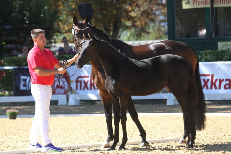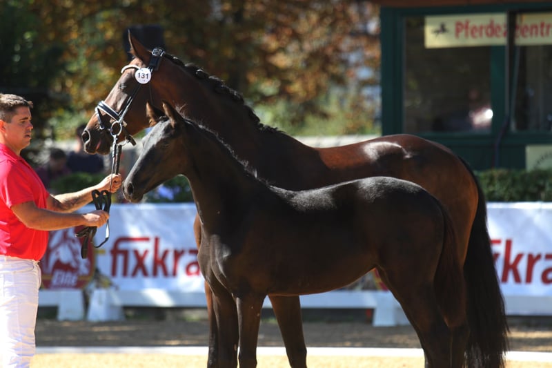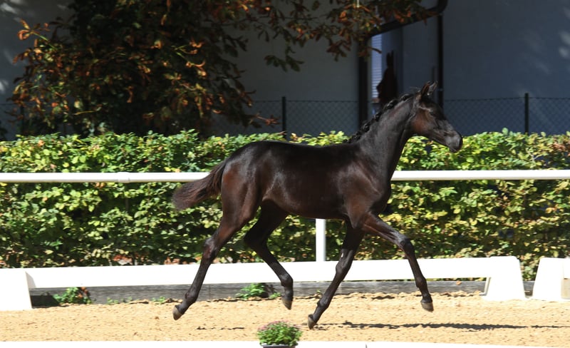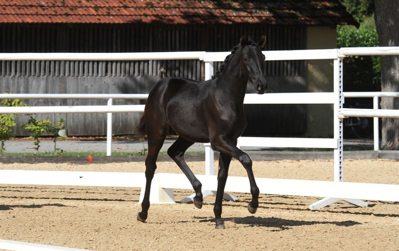 Ausdrucksstarkes und typstarkes Rappstutfohlen (Jahrgang 2025) mit bester Dressurabstammung zu verkaufen. Dieses Fohlen vereint Charme, Qualität und Charakter auf höchstem Niveau. 🏆 Erfolge: Reservesiegerin beim Landeschampionat 4. Platz beim Bundeschampionat Typ: 9,0 Exterieur: 8,0 Fundament: 8,0 Bewegung: 9,0 Ein Fohlen, das durch seine Bewegungsqualität, Präsenz und Ausstrahlung begeistert – ein echtes Juwel für Zucht und Sport! Mutter: Bambi (v. Benicio x Romanov) Absolvierte erfolgreich die Stutenleistungsprüfung Bis Klasse M erfolgreich platziert Beherrscht Lektionen der Hohen Schule Herausragender Charakter: Rittig, leistungsbereit und menschenbezogen