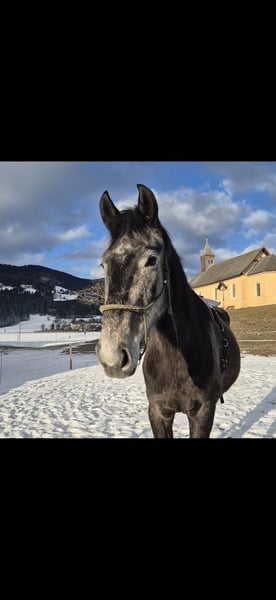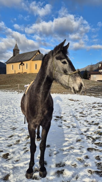 For sale is my lovely Austrian Warmblood mare, Freya (Diamant). She will likely shed a bit more coat as the season progresses. This little mare is nearly 4 years old and has spent her life in a herd on mountain pastures and meadows. She is currently approximately 16.1 hands tall and has a very sweet temperament. Due to an accident, I was unable to continue her training, so she is not yet backed but is familiar with the bridle. Freya is a truly well-behaved, friendly mare, low in the herd hierarchy, and very curious. She still needs a calm and confident handler to show her the world and give her time to settle. She is quick to learn and eager to cooperate. This is not a desperate sale and she will only be handed over to the best possible new owner! After a personal introduction between horse and handler, we can discuss further details. Please feel free to contact me via WhatsApp or message at 0650/5131579