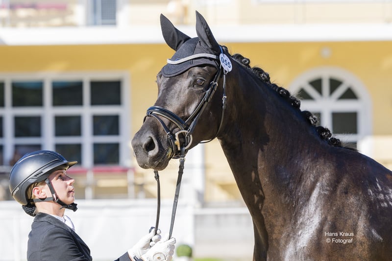 Typvolle, zwartbruine merrie, 1,69 m, met uitstekende perspectieven voor de dressuur. Na het zadelmak maken in mei 2025 ontwikkelt ze zich gestaag verder. Rhapsody R heeft al de eerste vier belangrijke proefonderdelen achter de rug. NÖ stamboekinschrijving WN 8,04 – NÖ kampioenschap voor rijpaarden WN 8,2 – Oostenrijkse Bundeschampionat WN 7,2 – Oostenrijkse vrijloopkampioenschap WN 8,125. Haar drie zeer goede basisgangen, haar goede karakter en haar aangename temperament maken haar tot een paard waar werken elke dag plezier geeft. Ze is goed getraind en helder van geest. Ook in het terrein, bij het laden en transport toont ze zich zelfverzekerd. Een zeer veelbelovend jong paard – ideaal voor een ambitieuze dressuurruiter. TÜV aanwezig. Tot 17-10-2025 staat ze nog in Stadl-Paura – daarna weer op de Auberghof.