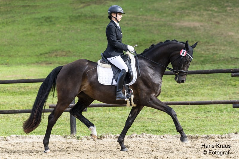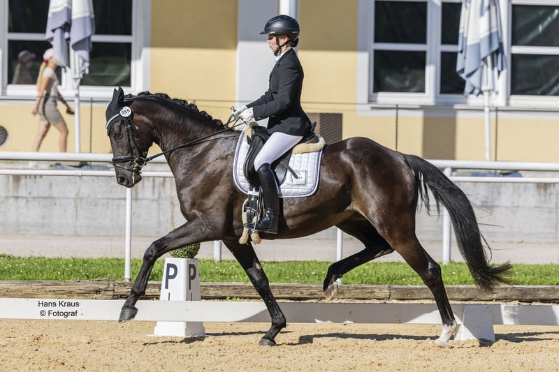 Typvolle, schwarzbraune Stute, 169 cm mit bester Perspektive für den Dressursport. Nach dem Anreiten Mai 2025 entwickelt sie sich kontinuierlich weiter. Rhapsody R hat schon die ersten 4 wichtigen Prüfungen hinter ihr. NÖ Stutbucheintragung WN 8,04 - NÖ Reitpferdechampionat WN 8,2 - Ö Bundeschampionat WN 7,2 – Ö Freilaufchampionat WN 8,125. Ihre drei sehr guten Grundgangarten, ihr guter Charakter und ihr angenehmes Temperament machen sie zu einem Pferd, mit dem die tägliche Arbeit auch Freude macht. Sie ist gut erzogen und klar im Kopf. Auch im Gelände, beim Verladen und Transport zeigt sie sich souverän. Ein sehr tolles Nachwuchspferd - ideal für eine ambitionierte Dressurreiterin. TÜV vorhanden. Bis 17.10.25 steht sie noch in Stadl Paura – danach wieder am Auberghof