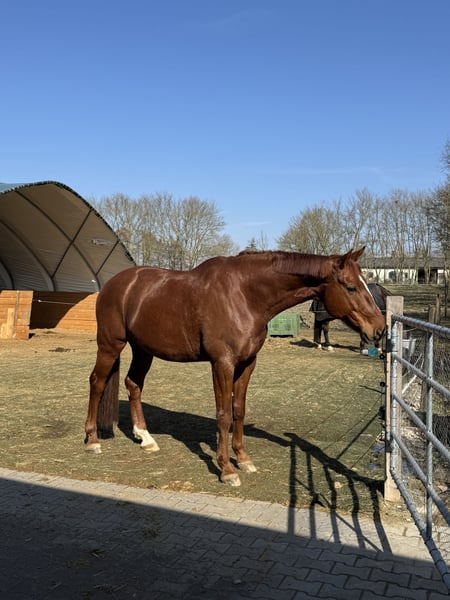 Imię: Balotelli („Bert“) Wiek: 11 lat Wysokość w kłębie: ok. 174 cm Rasa: austriacki koń gorącokrwisty Płeć: wałach ⸻ 🌟 Charakter Z ciężkim sercem poszukuję dla mojego wspaniałego wałacha Balotelli nowego, kochającego domu. Gdybym miał lepszą sytuację finansową, nigdy nie oddałbym go – dlatego tak ważne jest dla mnie, aby znalazł człowieka, który pokocha go tak samo mocno, jak ja. Bert to prawdziwy skarb: posłuszny, uważny, przytulaśny i przyjazny zarówno dla ludzi, jak i koni. Uwielbia być w centrum uwagi, jest zrównoważony, wrażliwy i zawsze stara się zadowolić swojego jeźdźca. Uważam go również za idealnego do celów terapeutycznych – daje zaufanie, spokój i poczucie bezpieczeństwa. ⸻ Umiejętności i zakres użytkowania Bert jest wszechstronnie wytrenowany i ma doświadczenie zarówno w ujeżdżeniu, jak i skokach. Chętnie chodzi w teren i tam zawsze zachowuje się grzecznie i odważnie. ⸻ Bert ma artrozę stawu szyjnego, która została wykryta przypadkowo – nie widać z tego żadnych objawów. Przy regularnym, umiarkowanym ruchu pozostaje całkowicie bez dolegliwości i obecnie nie wykazuje żadnych ograniczeń. Życzę mu małego paddocku lub miejsca z dużą ilością codziennego wybiegu i spokojną stadem, gdzie będzie mógł nadal być koniem i otrzymywać odpowiednią ilość ruchu. Miejsce ponad cenę!! 💰