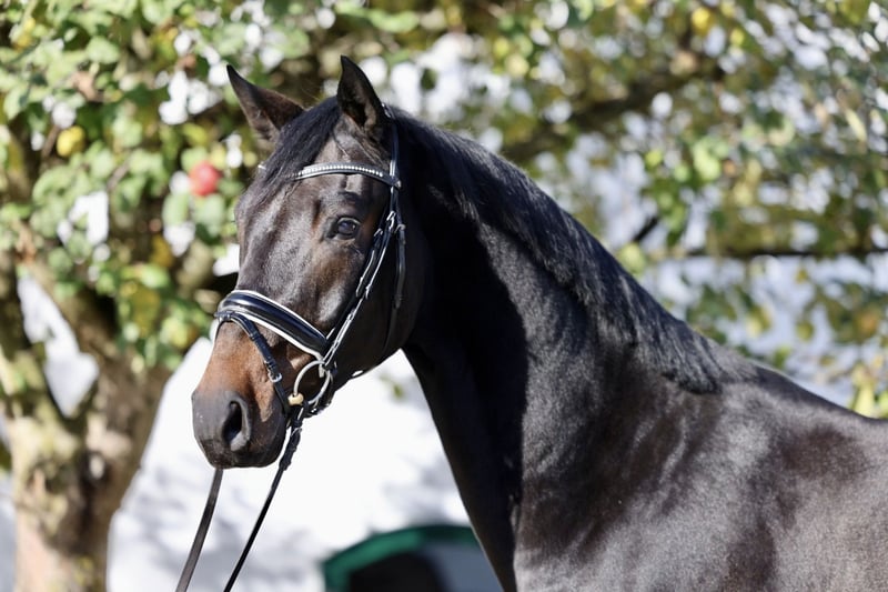 Felicio is an exceptionally charming and talented dressage horse with outstanding rhythm, suppleness, and an active hind leg. He has been in our possession since foalhood and was gently backed as a three-year-old, followed by the necessary time for further development. He now has competition experience and consistently demonstrates focus and eagerness to learn in the arena. Currently progressing towards class L, he impresses daily with his rideability, motivation, and work ethic. Highlights: 🌟 Correct basic gaits with plenty of expression 🌟 Very good hind leg and energetic impulsion 🌟 Pleasant temperament – motivated but always manageable 🌟 Healthy, regularly presented to the farrier and veterinarian Ideal for: ambitious riders seeking a horse with potential for upper-level dressage. For serious inquiries, we look forward to hearing from you and are happy to introduce Felicio personally.