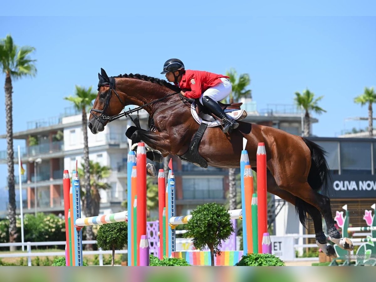 Nous proposons ce magnifique étalon de reproduction qui a participé aux plus grands concours, de nombreuses compétitions internationales 3*, 4* et GP 150-160. Il a également bien travaillé avec des enfants de 13 ans et a terminé 4ème au Championnat d'Europe. Si vous recherchez un cheval qui sera sûr pour vos enfants jusqu'au niveau jeune cavalier et même adulte, n'hésitez pas à me contacter sur WhatsApp : +36703671362.