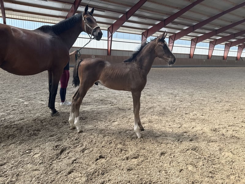Directly from the breeder: Beautiful, modern colt by the best dressage stallion Glocks Johnson TN, who tops the WBFSH list of leading sires! The colt has enough bloodline and already knows how to dance - with great rhythm and three good gaits, he impresses at a young age. He possesses a lot of charisma and is a real type - modern, athletic, and tall. The dam is Oberstaig’s Flunkyball by the top sire Fürstenball (x Stedinger / Rohdiamant), a large-framed, above-average rideable mare, who competed for a year before being bred. In total, she had 6 starts, winning 4 times and placing 2 times. No start without a placement. Her mother was successful up to class M and was a three-quarter sister (from the same mother) to Sam OLD, who was already a Grand Prix winner at the age of 7.