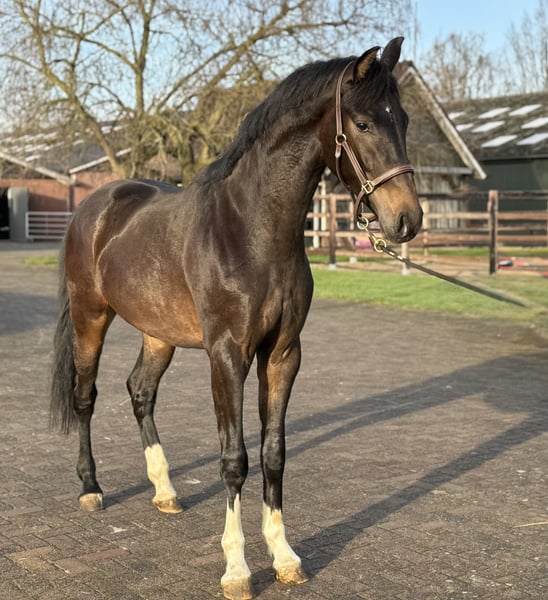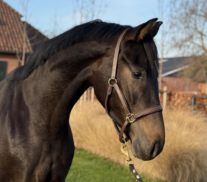 Deze jonge hengst springt gelijk in het oog met zijn moderne type en uitstraling. Hij kan fantastisch bewegen. Met veel afdruk en beentechniek beweegt hij door de baan. Hij is nog onbeleerd. Wel is hij eerlijk en braaf in omgang. Hij is gefokt uit de bekende Sondra stam. O.a. de moeder van Glock's Total US, Dante US, Mister Us en Lamborghini US en het Grand Prix dressuurpaard Zaid (v. Zonik) Bij interesse graag appen of bellen.