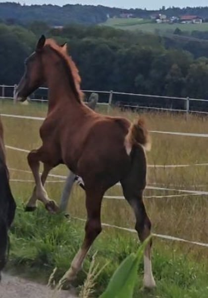 Piękny typ ogiera! Wyjątkowo swobodne ruchy, wspaniały galop z dużym unoszeniem. Ogier będzie bardzo wysoki! Urodzony 1.05.2024. Z powodu zaprzestania hodowli koni sportowych do dyscypliny ujeżdżenia sprzedajemy tego supergwiazdę.