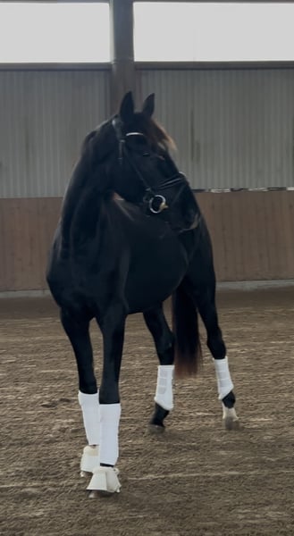 For sale: Young Oldenburg stallion – perfect for dressage! This elegant black colt was born in 2023 and impresses with his promising pedigree and noble appearance. Standing at 16.1 hh, he is already an appealing prospect for the dressage sport. The stallion exhibits a balanced temperament and a solid basic training. His elegant appearance and expressive movement suggest a bright future in dressage. Djago comes directly from the breeder, where he was raised with love and care. He is healthy and currently still barefoot. His three-year-old full brother shows talent and is very well-behaved under saddle. Rideability and character bring great joy. If interested, I am happy to provide more information and arrange a viewing. Please feel free to contact me! Other horses (show jumping/dressage) available upon request. Please contact me exclusively via WhatsApp: 0176 27767762 Thank you!