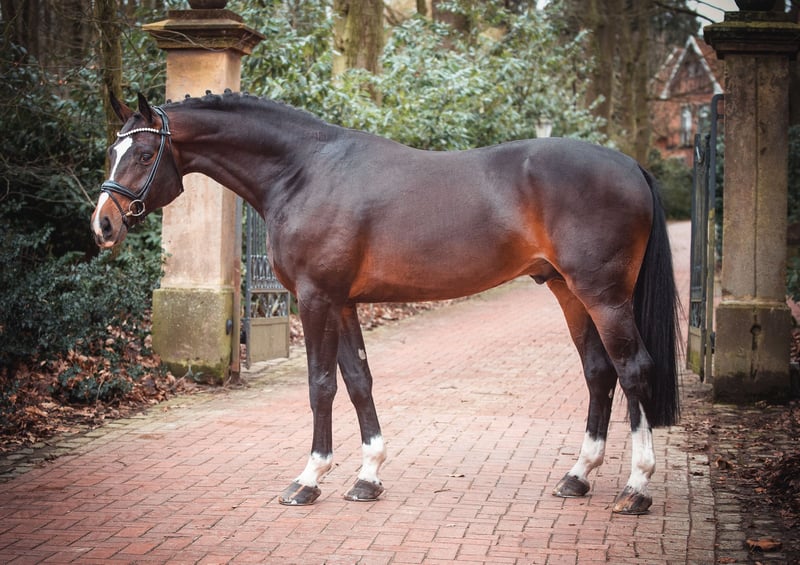 Wunderschön gezeichneter, typvoller und langbeiniger gekörter Hengst, aus einer der letzten prämierten Verbandsprämienstute v. Donnerhall! Zugelassen für OS, OL, DSP. Decktaxe auf Anfrage. Die ersten Fohlen sind in diesem Sommer geboren und erfüllen alle Erwartungen! Decktaxe auf Anfrage! Mutterstute ist Hengstmutter, Prämienstute und durch ihre Abstammung und Nachzucht eine absolute Zuchtrarität! Ihr Vollbruder ist ebenfalls gekört. Genetische Untersuchung wurde bereits durchgeführt, er ist wie sein Vater reinerbig dunkel, besitzt keinen Rotfaktor und kann somit keine Füchse hervorbringen! Da er sehr spät geboren ist (August), wurde er 3jährig nur behutsam angeritten und Ende der Saison mit Mädchen eine Reitpferde vorgestellt, die er souverän wie ein alter Hase trotz Deckeinsatz mit 7/8er Noten meisterte. Danach absolvierte er im Herbst als absolut jüngster Teilnehmer überhaupt seine HLP (50 TT Springen). Auch dort brillierte er trotz des extrem jungen Alters und ohne Altersausgleich gegenüber den 4-6jährigen mit top Noten!! Einer der wenigen Hengste die nicht ablongiert werden mussten. Inzwischen bei seinem dritten Turnier Springpferde A gewonnen und als einziger 4jähriger gegen 5 und 6jährige mit 8er Noten hoch platziert! Danach gewann er Bronze im Finale des Dobrocker Deister Springpferdechampionat in seiner ersten Springpferde-L überhaupt!! Aktuell bei seinen ersten Springpferde M Prüfungen platiert und für das Bundeschampionat 2025 qualifiziert! Er überzeugt auf ganzer Linie durch Qualität, In- und Exterieur gleichermaßen! Begeistert täglich auf's Neue durch seine Rittigkeit, Lern- und Leistungsbereitschaft, dabei stets ausgeglichen und abgeklärt wie ein alter Hase. Auch im Gelände ein Traum! Absolut keine Hengstmanieren trotz Deckeinsatz. Abstammungsgemäß wie sein Vater und seine Geschwister ebenfalls klar doppel veranlagt. Hier reift ein seltenes Nachwuchstalent heran, das definitiv in die Fußstapfen seines erfolgreichen Vaters treten wird! Bei entsprechender Ausbildung wäre er auch wie seine vielen Geschwister der ideale Hunter für den amerikanischen Markt! Springt sicher die Wechsel, immer locker und vorsichtig mit toller Manier. Abstammen von unserem Körsieger, HLP-Sieger und BuCha Finalist "Cafe au lait", der schon seit geraumer Zeit durch seine unheimlich erfolgreiche Nachzucht im Dressur- und Springsport auf sich aufmerksam macht (kann ebenfalls vor Ort besichtigt werden). Einer der wenigen Vererber, der etliche erfolgreiche Nachkommen in beiden Disziplinen bis zur schweren Klasse vorweisen kann! So wurde Cafe's Casimir" (Cafe au lait x Calido x Grannus) gefeierte Preisspitze der Oldenburger Eliteauktion, bereits in jungen Jahren Seriensieger in Dressurpferde M, 7jährig in seinen ersten S- Dressuren wieder Seriensieger! Mittlerweile ist er in international Intermediaire I siegreich. Stute Kasselmanns Cafe's Caletta (Cafe au lait x Calato) ist bereits S***-Dressur und international Grand Prix siegreich. Cafe's Matts (Cafe au lait x Don Frederico) wurde zweitteuerstes Dressurpferd der Oldenburger Summer Mixed Sales. Weitere Jungpferde aus springbetonten Mutterstuten sind bereits mehrfach in Dressurpferdeprüfungen A bis M platziert und sind bemerkenswert bewegungsstark und kopfklar. Dass die Cafe au lait Nachkommen im Springsport bis zur schweren Klasse überzeugen steht außer Frage. So wurde unser gekörter Cafe's Champus unter Rene Tebbel Vizeweltmeister der jungen Pferde und steht ebenfalls im Deckeinsatz. Ebenfalls gekört und aus unserer Zucht: Cafe Junior (Cafe au lait x Silvio I), international S*-Springen platziert Cafe's Columbo (Cafe au lait x Belstaff), in Frankreich gekört und hocherfolgreich in Jungpferdespringprfg. Cafe au lait selbst war unter Philipp Weishaupt Bundeschampionatsfinalist und ist bis S*** Springen erfolgreich gewesen, ist aber auch mit drei beeindruckenden GGA ausgestattet und dressurmäßig auf S Niveau ausgebildet worden. Stationiert bei Paul Schockemöhle zeugte er schon etliche international erfolgreiche Springpferde, u.a. "Royce" (Cafe au lait x Grandilot), siegreich im FEI CSI5* $500,000 Rolex Grand Prix Wellington. Ein sehr guter Röntgen sowie klinischer Tüv liegen selbstverständlich vor. Videoanfragen etc. ausschließlich vorab via WhatsApp.