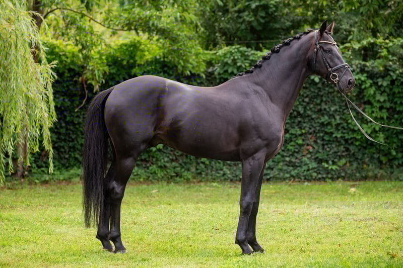 **Na sprzedaż: Wyjątkowy młody czarny ogier OLD do ujeżdżenia** Urodzony 10 maja 2019 roku, Fürst Bordeaux to elegancki ogier OLD (Oldenburg) po Fürst Toto, z Bretagne jako matką, a Bordeaux jako dziadkiem ze strony matki. O wysokości 166 cm, jego klasyczna czarna sierść i wysublimowana budowa przyciągają uwagę natychmiast. Obecnie w treningu ujeżdżeniowym, demonstruje zrównoważone chody, ekspresywny ruch i chęć do pracy – cechy charakterystyczne konia, który rozwija się w kierunku wyższych poziomów. Idealny dla jeźdźca poszukującego młodego ogiera z potencjałem i solidnymi podstawami. Aby uzyskać więcej informacji lub umówić się na wizytę, prosimy o kontakt z nami już dziś.
