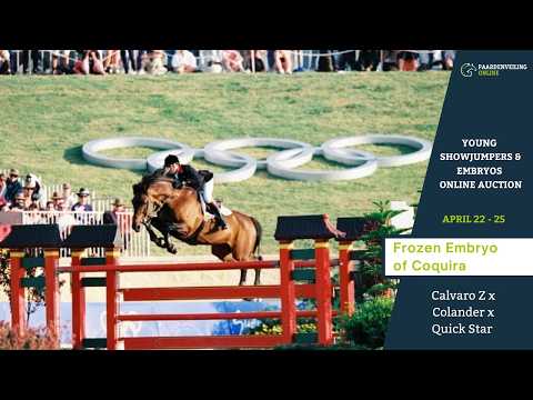 Mit Calvaro Z als Vater und Coquira (Colander x Quick Star) als Mutter stammt dieses Kryo-Embryo aus einer Verbindung bewährter 1,60-m-Qualität und einer leistungsstarken Mutterlinie. Calvaro Z selbst hat auf höchstem Niveau gezeigt, was er kann, und ist bekannt für seine Springqualität, Robustheit und einen starken Charakter – Eigenschaften, die hier durch eine international erfolgreiche Mutterlinie zusätzlich untermauert werden. Die Mutter Coquira war bis 1,50 m erfolgreich und stammt von Kurkonzert II (Quick Star x Narew xx) ab, einer Mutterlinie, die Sport und Zucht stets harmonisch verbindet. In der engen Familie finden sich unter anderem die 1,60-m-erfolgreiche Calvira (von Calvaro Z) sowie mehrere Sportpferde über mehrere Generationen hinweg. Die Kurkonzert-II-Linie zeigt zudem eine starke Leistungsproduktion, darunter der 1,60-m-fahrende Calvaro’s Konzert (von Calvaro Z), der 1,50-m-fahrende Florentino sowie mehrere international erfolgreiche Pferde im Springen auf 1,40–1,50 m Niveau. Ein äußerst attraktives Kryo-Embryo für alle, die auf der Suche nach einem bewährten Sportpaket sind: Calvaro Z verbunden mit einer Mutterlinie, die zuverlässig Pferde für höhere Prüfungen hervorbringt, mit klaren 1,60-m-Leistungen in der direkten Familie.