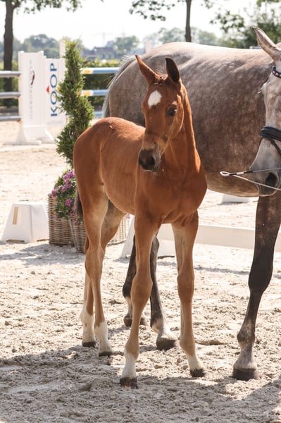 Premium foal by Toucento from a successful dam line for sale. Sire Toucento by Toulon is highly successful under Hendrik Sosath up to medium (M) level show jumping. The dam's half-brother, Luiggi W by Ludwigs As, is successful in international show jumping competitions up to 1.45m. The fourth dam, Kuriose, produced another advanced (S) level show jumper, Kortina W by Zeus.