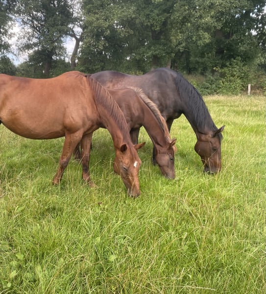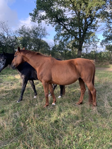 Hallo, wegen Bestandsverkleinerung verkaufen wir unsere 2009 geborene Stute. Wir selber haben sie 2020 von einer Auktion gekauft. Geritten wurde sie vorher nicht. Wir haben sie kurzzeitig geritten um herauszufinden, ob sie sich reiten lässt. Dies war kein Problem. Bei uns war sie dann aber reine Zuchtstute und hat uns zwei großrahmige, korrekte Fohlen gebracht. Sie ist im Umgang bisher immer sehr unkompliziert gewesen. Besamungen zu Hause sind auch kein Problem, sie ist bisher jedes Mal auf Anhieb tragend geworden. Die beiden Fohlen sind auch auf den Bildern zu sehen. Sie war bisher nie krank oder verletzt. Besichtigungen nach Absprache möglich.