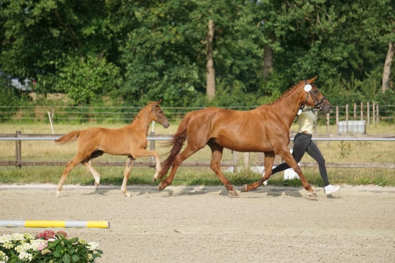 Hello, Due to a reduction in our herd, we are selling our mare, born in 2009. We purchased her ourselves at an auction in 2020. She had not been ridden prior to that. We briefly rode her to see if she was suitable for riding, which was no problem. However, she has primarily been used as a broodmare with us and has produced two large-framed, correct foals. She has always been very straightforward and easy to handle. Artificial insemination at home is also no issue; she has always become pregnant on the first try. The two foals are also visible in the pictures. She has never been ill or injured. Viewings are possible by arrangement.