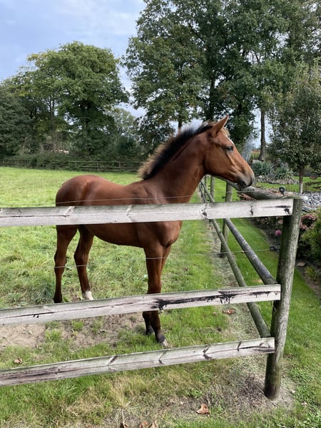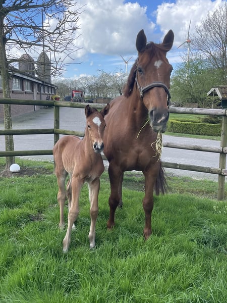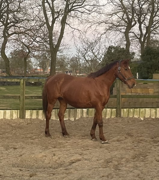 Hallo, vanwege een reductie van onze paardenstapel bieden wij onze merrie, geboren in 2009, te koop aan. We hebben haar zelf in 2020 gekocht op een veiling. Ze was daarvoor niet gereden. We hebben haar kort gereden om te zien of ze geschikt was om te rijden, wat zonder problemen verliep. Daarna werd ze bij ons uitsluitend gebruikt als fokmerrie en heeft ze twee grote, correcte veulens gebaard. In omgang is ze tot nu toe altijd zeer makkelijk geweest. Inseminaties thuis vormen ook geen probleem; ze is tot nu toe telkens direct drachtig geworden. De twee veulens zijn ook op de foto's te zien. Ze is tot nu toe nooit ziek of gewond geweest. Bezichtigingen zijn mogelijk na afspraak.