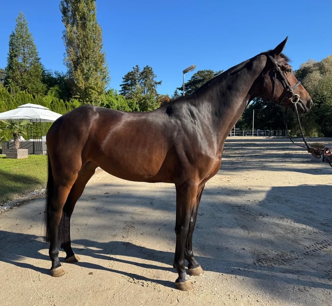 Diese außergewöhnliche Stute aus erstklassiger Springabstammung überzeugt bereits jetzt mit ihrem Talent, ihrer Rittigkeit und ihrem ausgeglichenen Wesen. Aus erster Hand aufgezogen, zeigt sie bei ihren ersten Sprüngen eine hervorragende Technik, viel Übersicht und eine natürliche Leistungsbereitschaft. Dank ihrer freundlichen, umgänglichen und sehr kooperativen Art eignet sie sich nicht nur für den ambitionierten Sportreiter, sondern ist auch eine ideale Partnerin für Amateure, die ein verlässliches, motiviertes und gut ausbalanciertes Pferd suchen. Mit ihrer modernen, sportlichen Erscheinung, einer klaren Einstellung zur Arbeit und viel Potenzial ist sie ein echtes Traumpferd für Sport und Freizeit. Highlights: • Jahrgang 2020 • Top-Springabstammung • Erste Sprünge: viel Talent & Übersicht • Sehr rittig, lernwillig, fein zu reiten • Ausgeglichenes, freundliches Temperament • Ideal für Amateur & Profi • Aus erster Hand Gerne sende ich weitere Informationen, Fotos oder Videos zu. Exceptional Young Mare with Elite Showjumping Pedigree (Born 2020) A rare opportunity to acquire a truly outstanding young mare. Born in 2020 and bred from a top-class showjumping lineage, this elegant mare impresses with her natural ability, her harmonious movement, and a temperament that makes her an absolute pleasure to work with. Raised directly from the breeder, she is developing beautifully and already demonstrates remarkable technique, carefulness, and scope in her first jumps. Under saddle she shows outstanding rideability—light, responsive, and eager to learn. Her kind, balanced and people-oriented character makes her not only suitable for ambitious riders looking for a future sport partner, but also for amateurs seeking a trustworthy, uncomplicated and highly enjoyable horse. Whether in competitive sport or refined leisure riding, she is a dream horse for those who appreciate elegance, quality and heart. Premium Highlights: • Born 2020 – modern type, athletic & correct • Elite showjumping pedigree with international performance bloodlines • First jumps: scopey, intelligent, well-balanced • Luxury rideability – soft contact, sensitive, willing • Golden temperament – friendly, calm, cooperative • Perfect for ambitious amateurs and professional riders • One-owner horse with transparent history A mare for connoisseurs who seek excellence.