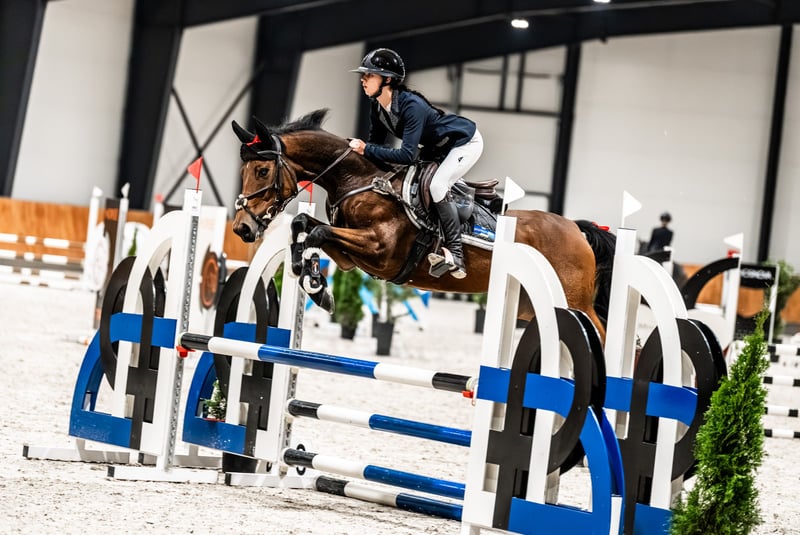 For sale a young pony with the potential and quality for the highest level. Checky has been in training for a year (with us). She has already won the 90cm competition and successfully started competing in the 1m class. She has a wonderful jumping technique with a large gallop. Her full pedigree includes horses up to 1.60m level! She is not suitable for beginners, as she is soft in her mouth and is afraid of horses during warm-up. She jumps everything, easily goes to the horsetruck, rides in the forest, and spends time in the paddock daily. She has excellent X-rays from two years ago. If you are experienced and are looking for a young pony to develop with the potential to compete in European Pony Championships, Checky is the right choice. I'd be happy to send you videos via WhatsApp; they're too long to post here: +48693895779