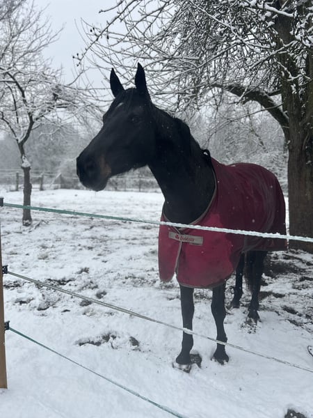 Verkaufe meine wunderschöne, im Hengsttyp stehende Oldenburger Stute. Sie ist solide und kompakt gebaut, mit nahezu perfektem Exterieur, toller Bemuskelung und geradem Rücken. Vielseitig einsetzbar als Spring-, Dressur- oder Freizeitpferd. Letztes Jahr durfte sie Turnierluft schnuppern und konnte sich gleich mit 8,0 in einer Springpferdeprüfung platzieren. Aktuell steht sie im Offenstall mit einem Wallach und einer Ponystute und zeigt sich dort ranghoch. Sie ist selbstbewusst, hat aber einen liebenswürdigen Charakter und viel Präsenz. Besonderheiten: • Kein Anfängerpferd, dennoch problemlos von Freizeitreitern im Gelände reitbar • Läuft Barhuf, brav beim Schmied, verladefromm • Videos vom Freispringen, Turnier und Ausreiten auf Anfrage verfügbar • Röntgenbilder von vor 3 Jahren ohne Befund, neue Untersuchung (AKU) kann auf eigene Kosten durchgeführt werden Grund des Verkaufs: Aufgrund meines ersten Jahres mit eigenem Offenstall komme ich leider kaum zum Reiten. Bei Interesse oder weiteren Fragen einfach kurz per WhatsApp oder anrufen.