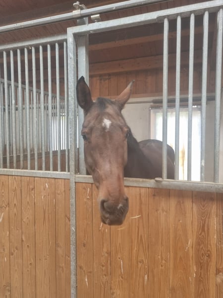 Wegen Bestandsverkleinerung steht zum Verkauf eine talentierte Oldenburger Stute, geboren im Jahr 2019. Sie präsentiert sich in einem eleganten schwarzbraunen Fell und hat ein Stockmaß von ca 172 cm. Diese Stute überzeugt durch ihre hervorragenden Springfähigkeiten und ihr einnehmendes Wesen. Ihre Vielseitigkeit und ihr Potenzial machen sie zu einer vielversprechenden Partnerin im Parcours. Aktuell ist Klara nicht im Training, dadurch können wir kein Probereiten vereinbaren. Die Stute ist gut ausgebildet, allerdings nicht für Anfänger, Wiedereinsteiger oder Angst-Reiter geeignet. Sie hat ein ordentliches GO! Und dass möchte Sie zeigen. Wir sehen Sie im Sport, durch Ihre starken Bewegungen.Sie hat bereits erste Erfahrungen im Freispringen gesammelt und begeistert durch ihre Sprungtechnik und ihren Ehrgeiz. Bei Interesse oder für weitere Informationen stehe ich Ihnen gerne zur Verfügung. Besuchen Sie uns, um diese außergewöhnliche Stute kennenzulernen!
