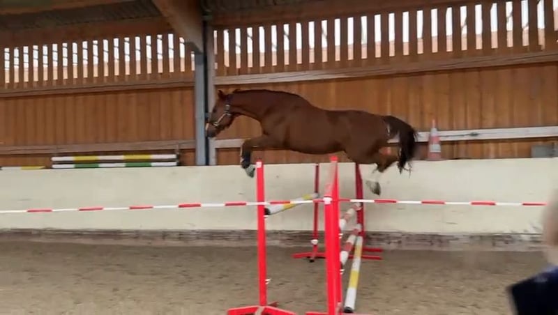 Extrem feiner, Sehr intelligenter und sensibler, Partner in Crime. Wacher, freundlicher Charakter. KEINE ANFÄNGER!!!! Nur für sehr feine, ruhige Reiter, grobe Hand oder unfaire Methoden und du fliegst. Super lieb, extrem Menschenbezogen. Ein Personen Pferd! Gezüchtet und Aufgezogen bei Schockemöhle. Chacco Blue /Clarimo /Sandro Boy Mit etwa 6 Jahren gelegt, davor gekört. Eine Hinterhand die seinesgleichen sucht. Übersicht am Sprung. Mutig. Springt jedoch nicht kopflos. Wenn er das Gefühl hat, du bist unsicher, entscheidet er. Kein Steiger. Er braucht liebevolle, aber konsequenten Umgang. Warum verkaufe ich? Nicht leichtfertig. Hatte vor Monaten einen schweren Reitunfall mit meiner Stute, kurz danach verunglückte mein Mann. Näheres gerne persönlich. Ein Schmuser und Clown durch und durch. KEINE HÄNDLER! , KEIN "LETZTER PREIS"