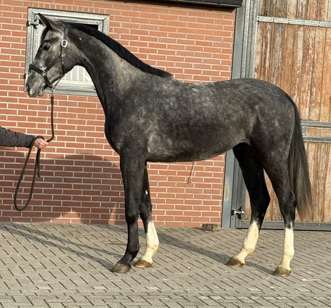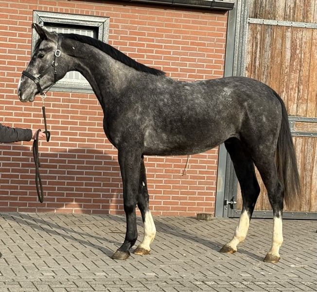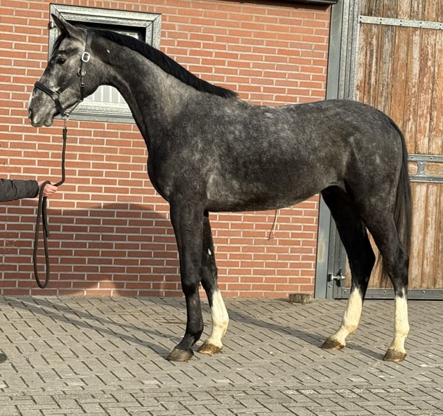 Very striking and impressive 2.5-year-old gray gelding. A horse with good and powerful movements. This gelding has exceptional jumping ability. He demonstrates a lot of scope and excellent technique. *PRICE €7,500 excluding VAT For inquiries, please call +31 643 197337.