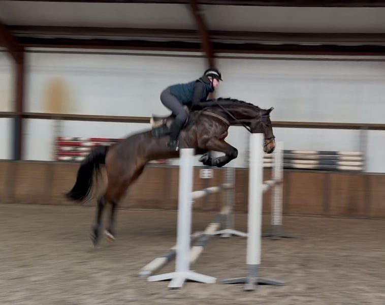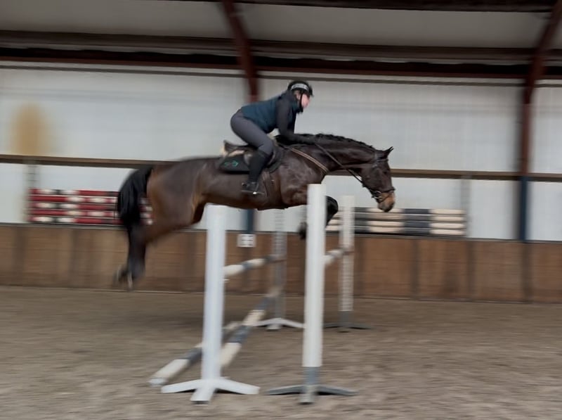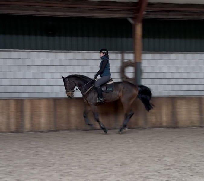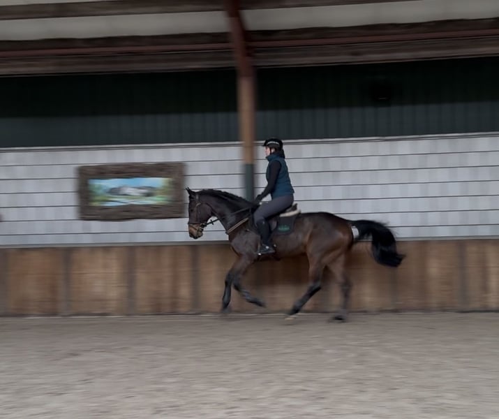 Potente y robusta y con mucho potencial. Joven de 6 años, 1,68 m. Holsteiner por Conthargos x Clinton x For Pleasure. Muestra mucha calidad, es cauteloso y tiene un carácter amable. Siempre quiere llegar al otro lado. Tiene experiencia en concursos hasta 1,00 m y realiza esto de manera tranquila. No es nervioso ni miedoso. Actualmente en entrenamiento avanzado y puede dar el salto a 1,10 m. También es fácil de montar en doma. No es fuerte. Además, salta con buen estilo en sus cambios. Responde bien a las ayudas. ✅ Saludable y sin defectos. 🎥 Video disponible. ☎️ 0031-610197456
