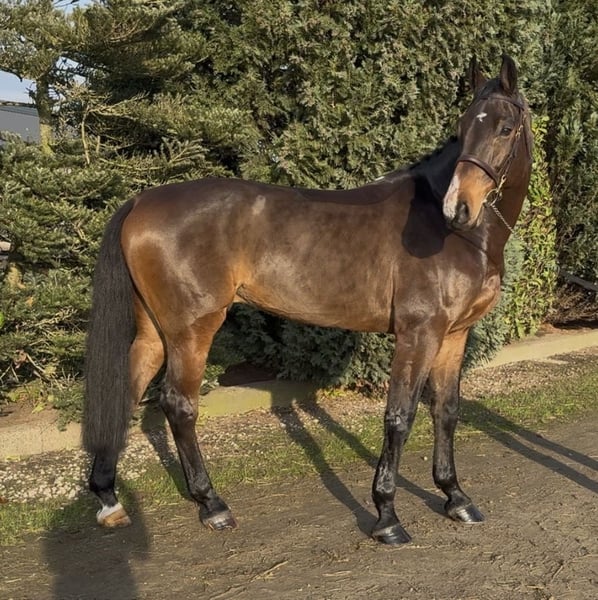 Robuste Stute mit großem Potenzial. 6 Jahre alt, 1,68 m. Holsteiner v. Conthargos x Clinton x For Pleasure Zeigt viel Qualität, ist vorsichtig und hat ein angenehmes Wesen. Möchte stets auf die andere Seite gelangen. Erfahrung im Springen bis 1,00 m. macht dies brav. Ist weder schreckhaft noch spooky. Derzeit wird sie weiter ausgebildet und kann den Sprung auf 1,10 m machen. Auch im Dressurviereck angenehm zu reiten. Nicht stark, springt auch schön ihre Wechsel. Reagiert gut auf die Hilfen. ✅ Gesund und ohne Mängel. 🎥 Video verfügbar. ☎️ 0031-610197456