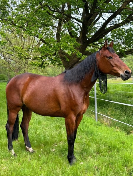 Verkaufe elegante Oldenburger Stute – Perfekt für Freizeit und Gelände! Zum Verkauf steht eine wunderschöne braune Oldenburger Stute, geboren am 20.04.2015, volle Papiere. Mit einem Stockmaß von 168 cm vereint sie Größe und Anmut. Sie ist eine zuverlässige Begleiterin für alle Freizeitaktivitäten und begeistert durch ihr angenehmes Temperament, ihren Charakter und ihre vielseitigen Einsatzmöglichkeiten. Im Gelände ein absolutes Verlaßpferd, auf dem Platz findet sie das arbeiten nicht ganz so spannend und "testet" neue Reiter dahingehend ob sie es wirklich "ernst" meinen, dabei bleibt sie selbstverständlich trotzdem brav (kein steigen oder bocken!). Diese liebevolle Stute ist gesund, gut ausgebildet und zeigt sich im Umgang stets freundlich und kooperativ (auf dem Platz, wie oben beschrieben, erst nach kurzer Diskussion bei neuen Reitern, sobald das aber geklärt ist, ist sie an Folgetagen dann auch bei Diesen leistungswillig). Ideal für Reiter, die eine zuverlässige Partnerin für ausgedehnte Ausritte, Spaziergänge oder einfach zur Freude im Gelände suchen. Bei Interesse oder weiteren Fragen stehe ich Ihnen gerne zur Verfügung. Vereinbaren Sie einen Termin und überzeugen Sie sich selbst von diesem charmanten Pferd! Standort des Pferdes: 49594 Alfhausen