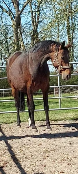 Onze prachtige merrie Rosengold x Wolkenstein II x Amerigo Vespucci xx zoekt vanwege een reductie in de veestapel een nieuw thuis. Om bovengenoemde reden is ze voor 2026 niet drachtig en kan ze dus in het komende veulenseizoen worden geïnsemineerd. Geboren in 2013 Schofthoogte ca. 1,66 m – van nature groot Merriestam van ARLIRA Als jong paard aangezadeld, daarna ingezet voor de fokkerij. Volledig ontspannen, zowel in de merriegroep als in het dagelijkse omgang, bij het inladen, de hoefsmid en de dierenarts. Ze is tot nu toe altijd bij het eerste attempt drachtig geworden. De drachtigheden en bevallingen verliepen steeds probleemloos. Een geweldige moeder. In 2024 kreeg ze een prachtig, goud gekeurd hengstveulentje van Fürst Bellisaro, en in 2025 bracht ze, in combinatie met Lodovico, een uitstekend merrieveulentje voort dat consistent beoordeeld werd met cijfers tussen 8,0 en 9,0. ARLIRA, Hannover merriestam 1191502, Schridde 686 Uit de merriestam van Arlira komen al zeer succesvolle dressuurpaarden zoals Jasper v. Jonkheer tot S, Jenson v. Jerome II tot Grand Prix, Gina Royal OLD v. Grosso Z tot Grand Prix Special, Foenix v. Fontainebleau tot St. Georg, Royal Sugar v. Royal Dance tot St. Georg, White Rubin v. White Star tot Inter I, Rubico v. Rohdiamant tot St. Georg, Remy v. Rothschild tot Grand Prix Special, Warrant (VA) v. Wendelin tot St. Georg, Leonardo v. Diskus tot St. Georg, Aragon v. Ambro xx tot S, Juwelier v. Jerome II tot Inter I. Een halfbroer van de moeder werd gekeurd als premiehengst, en de grootmoeder van de merrie is ook grootmoeder van de dekstaal Freigeist. Misschien zoekt iemand nog een betrouwbare, brave merrie voor "klein geld." Een snelle afhandeling, gezien het komende fokseizoen, zou natuurlijk wenselijk zijn.