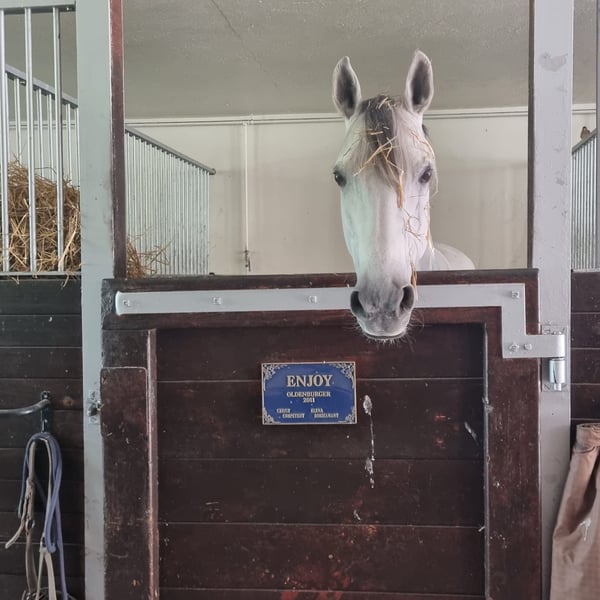 Enjoy is een lieve merrie die reeds wedstrijden gelopen heeft op ZZlicht niveau/Niveau 3. Omdat de eigenaar naar het buitenland verhuist en ze voor haar merrie met lichte arthrose een "forever" home zoekt gaat enjoy aan een zeer schappelijke prijs weg. Graag zien we haar bij iemand die recreatief dressuur rijd en/of wandelingen maakt en die veel tijd heeft voor poetsen en knuffelen. Enjoy is zeker ook geschikt voor een minder ervaren of minder dappere ruiter of zelfs voor een kind die de stap van pony naar paard maakt. Enjoy is steeds rustig en verstandig ook na meerdere dagen niks doen kan je zo weer opstappen en wegrijden. Gezien de lichte arthrose heeft enjoy een iets langere opwarm tijd nodig voor het dressuur werk maar kan verder gewoon gereden worden. Indien er toch iets meer dressuur ambitie is is het behandelen van de arthrose zeker ook nog een mogelijkheid, dit werd tot op heden nog niet gedaan. Bij contact opname kan hier meer uitleg over gegeven worden. 100% eerlijk en gezond paard die graag terug haar persoon of familie wil.