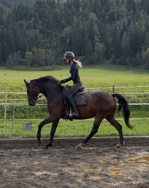 Super liebe Stute Mausi ist eine tolle 14 jährige Stute die ca 165cm groß ist. Sie stammt von Sir Donnerhall 1 - Locksley ab. Die Stute war auch Landessieger Stute und hatte schon Fohlen, daher auch als Zuchtstute interessant. Sie ist absolut gesund und super brav und unkompliziert im Umgang. Mausi so wie sie bei uns genannt wird ist sehr schön dressurmäßig zu reiten und hier auf A Niveau. Sie macht brav kleine Sprünge und ist unkompliziert und brav beim Ausreiten. Schmiede und Verladefromm.