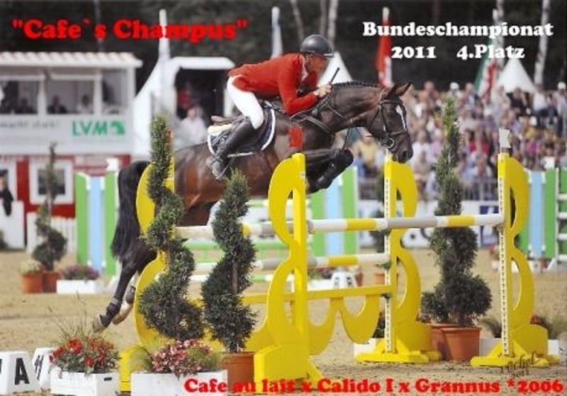 Cavalla incredibilmente nobile, fiorita e colorata, proveniente dal nostro allevamento, in parto per febbraio 2025. Nasce da una sorella piena dello stallone campione, vincitore di HLP e finalista di BuCHa, Cafe au lait, che da diversi anni attira l'attenzione con la sua progenie di incredibile successo nel dressage e nel salto ostacoli a livello avanzato. Ha già prodotto due puledri di grande successo che sono stati approvati per la licenza e venduti all'estero all'asta. Ora è il puledro del figlio di Cafe au lait "Cafe's Don Rubin", di recente licenza, che nella sua prima stagione espositiva come giovane di 3,5 anni (*agosto) è già stato in grado di brillare contro cavalli molto più anziani in competizioni di salto ostacoli per principianti**! Convince anche per la sua chiara disposizione al doppio e per gli alti valori di cavalcabilità. Purosangue scuro, nessun castano può cadere! Colorato e forte come la cavalla, ci aspettiamo un puledro davvero speciale! I nostri puledri ricevono quotidianamente mangime minerale e starter per puledri, EQUISTRO Haemolytan e Ipaligo Foal regolari, sverminazione e maniscalco. Le fattrici ricevono anche un mangime speciale per le cavalle durante la gravidanza, un mangime giornaliero a base di succo di frutta e olio di semi di lino, oltre a fieno ad libitum. Questo assicura che la nostra prole sia sempre in ottima salute! Altri puledri e figli del nostro programma di allevamento su richiesta. Alcuni di essi si trovano nelle altre inserzioni. Ogni anno abbiamo circa 20 puledri di Cafe au lait e Cafe's Don Rubin. Le richieste di video ecc. in anticipo sono possibili solo tramite Whats App.