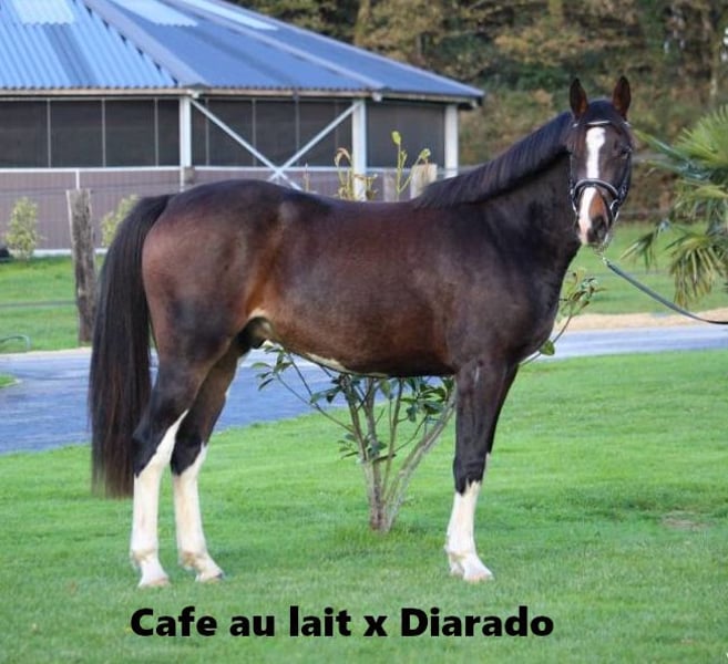 Jument incroyablement noble, fleurie et colorée, issue de notre propre élevage, pleine pour février 2025. Elle est issue de la propre sœur de l'étalon vainqueur, vainqueur HLP et finaliste BuCHa Cafe au lait, qui attire l'attention depuis quelques années déjà par sa progéniture incroyablement performante en dressage et en saut d'obstacles de classe difficile. Elle a elle-même connu le succès en saut d'obstacles de niveau S au niveau international et a déjà donné naissance à deux poulains très réussis qui ont été admis à l'approbation et vendus à l'étranger par le biais de la vente aux enchères. Il est maintenant porteur du fils de Cafe au lait, "Cafe's Don Rubin", qui vient d'être approuvé et qui, lors de sa première saison de compétition, a déjà pu briller en tant que participant le plus jeune à 3,5 ans (*août) contre des chevaux nettement plus âgés dans des épreuves de saut d'obstacles A** ! Il convainc lui aussi par sa double prédisposition et ses valeurs de maniabilité élevées. Pur-sang foncé, il ne peut pas tomber un alezan ! Tout aussi coloré et fort en mouvement que la jument, nous attendons ici un poulain très particulier ! Nos poulains reçoivent tous les jours de l'aliment minéral et du starter pour poulains, régulièrement EQUISTRO Haemolytan et Ipaligo Foal, les vermifuges et le forgeron sont bien entendu également présents. Les mères aussi reçoivent un aliment spécial pour juments pendant toute la gestation, de la nourriture quotidienne au jus et de l'huile de lin, ainsi que du foin ad libitum. Ainsi, notre progéniture est toujours en excellente santé ! D'autres poulains et jeunes chevaux de notre propre élevage sont disponibles sur demande. Une partie se trouve parmi les autres annonces. Chez nous, il y a chaque année environ 20 poulains de Cafe au lait et Cafe's Don Rubin. Les demandes de vidéo etc. sont possibles uniquement via Whats App.