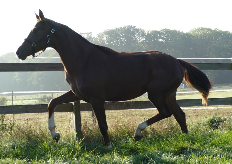 Hermosa y grande yegua de color castaño oscuro con la mejor conformación y estructura, con 4 veces pura y blanca, con una mancha blanca regular y bonita. Muy dócil y bien educada, criada con mucho cuidado y muy bien desarrollada. Con Sezuan, Sezuans Donnerhall, Dante Weltino, Danone y De Niro, portadora de un pedigrí con caballos de alto rendimiento en concursos internacionales de Gran Premio. Aquí se está formando una joya muy especial. Línea Oldenburger Elektia.