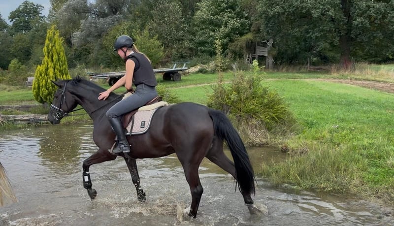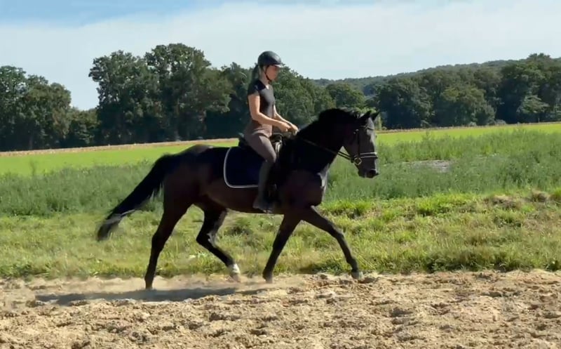 Destina ist eine 3j Stute vom Despacito x His Highness. Seit kurzen unter dem Sattel überzeugt sie durch ihre Rittigkeit und Lernbereitschaft. Außerdem besticht sie durch ihren tollen Charakter.Für ihr Alter ist sie schon total abgeklärt. Ob in der Halle oder draußen, die Arbeit mit ihr macht immer Spaß. Dazu ist sie mit drei guten GGA ausgestattet. Hier reift ein tolles Nachwuchspferd heran, für den Turnier oder Freizeitbereich gleichermaßen. Auch ihren ersten Ausflug zum Geländeplatz meistert Destina mit Bravour. Auf/Ab Sprünge kleine Baumstämme, Wasserdurchritt-alles sofort gut umgesetzt. Aktuell ist sie 1,65(noch überbaut). Ein aktueller Röntgentüv liegt bereits vor. Die Zähne wurden gemacht,entwurmt und geimpft (Influenza, Tetanus, Herpes) Weitere Fragen gerne unter 01718041423 Die Stute ist ein Hannoveraner, kann leider nicht nachträglich in der Anzeige abgeändert werden.
