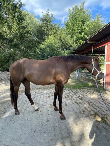🥕 3-year-old mare by Total Hope 🥕 In the video, she is the fourth horse under the rider! Clear-headed Well-behaved Knows farrier work & trailer loading Expected height over 173 cm Good health certificate (TÜV) With AKU (equine health certificate) ✨ Total Hope x Sieger Hit x Don Gregory x Rohdiamant ✨ 🌟 Grandmother Maradita is the full sister of the recently deceased Maradonna (mother of Fürstenball) Also of interest for breeding due to her pedigree 📍 Location between Tübingen and Reutlingen Price negotiable for a good home