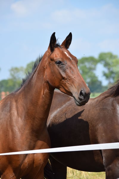Deze expressieve 3-jarige merrie van Diamond First overtuigt met een geweldig karakter en uitstekende gangen. Haar moeder is een raszuivere volbloed merrie (Achal-Tekkiner). De Achal-Tekkiner is een van de oudste paardenrassen. Ze worden beschouwd als zeer robuust en duurzaam. Ze zijn zeer geschikt voor endurance en eventing. De moederlijn heeft ook zeer goede gangen en met de combinatie van Diamond First heeft First Light de beste voorwaarden voor een succesvolle toekomst. Ze kent de stapmolen, vrijspringen, trailer rijden en hoefsmid al, maar is nog rauw. We zijn van plan om in de winter met haar te gaan trainen. Ze is momenteel ongeveer 1.56 m Ze kan altijd bekeken worden.