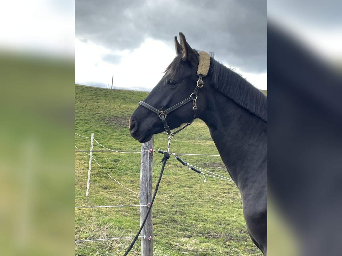 Zum Verkauf steht eine aussergewöhnlich schöne Rappstute ohne Abzeichen, direkt vom Züchter. Mit ihren ca. 1.60 m, kompakter Statur und eleganter Ausstrahlung überzeugt sie sowohl optisch als auch in der Bewegung. Die Stute ist dressurgezogen und verfügt über sehr gute Grundgangarten – taktklar, schwungvoll und stets ausbalanciert. Sie bewegt sich leichtfüssig und geschmeidig und bringt damit beste Voraussetzungen für eine erfolgreiche sportliche Zukunft mit. Ihr toller Charakter macht sie zu einer echten Freude im täglichen Umgang: brav, lernwillig und menschenbezogen. Mit 4 Jahren ist sie bereit für die Ausbildung und wartet darauf, weiter gefördert zu werden. Ein wunderschönes Nachwuchspferd für ambitionierte Reiter:innen oder Liebhaber feiner Dressurpferde.
