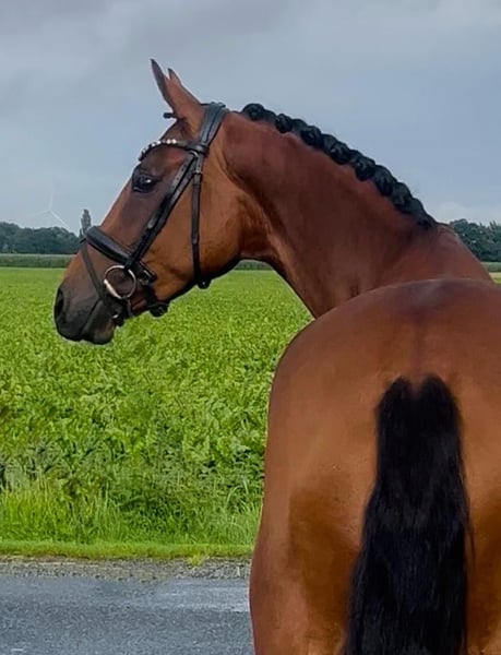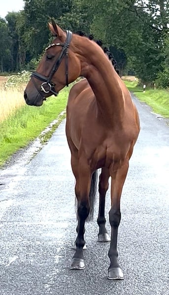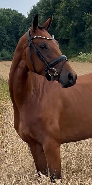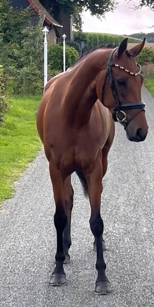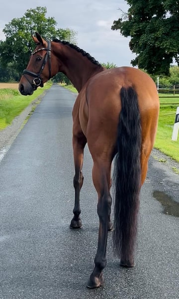 Valentina Valverde x Dante Weltino x Rubinstein I This enchanting 4-year-old mare can bring a smile to your face. Directly from the breeder, this charming jewel stands at 1.60 m. Her excellent rideability and big heart make her a very interesting partner and competition horse. Ideal as a transition horse and also suitable for less experienced riders. Blacksmith and loading friendly. Under saddle for about 3 months. Ridden in the countryside. Herd compatible. Healthy with a very good vet check. For information or video, please contact with full name via WhatsApp.